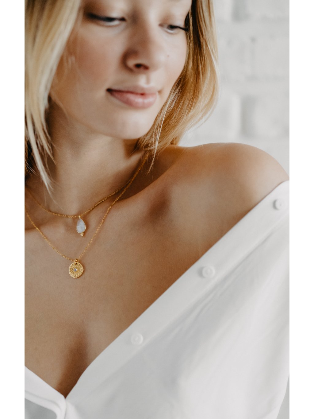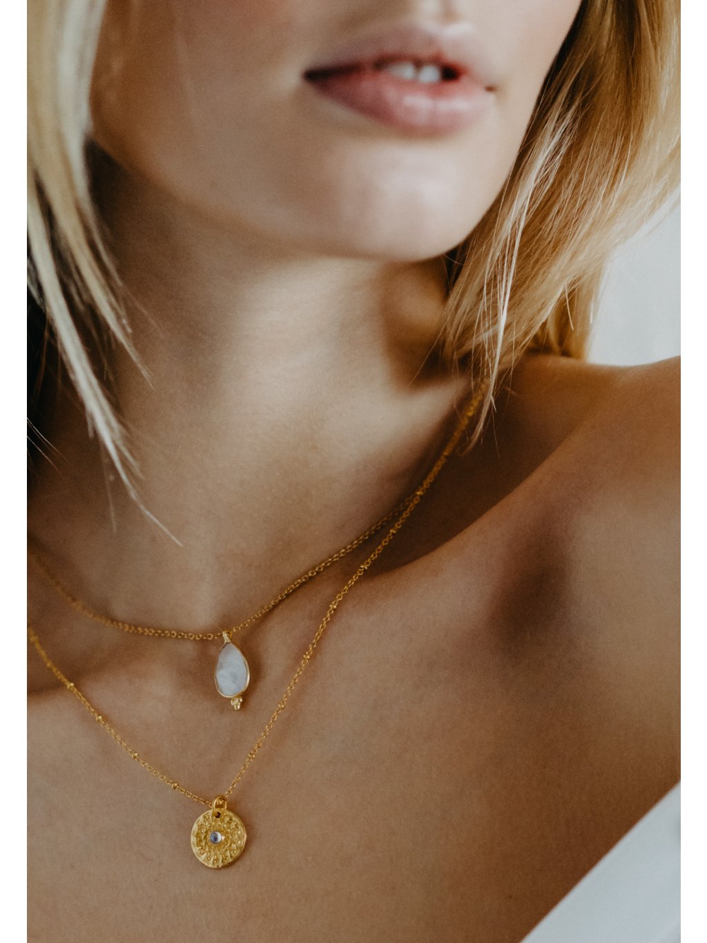 Náhrdelník Sea drop s měsíčním kamenem s pozlacením